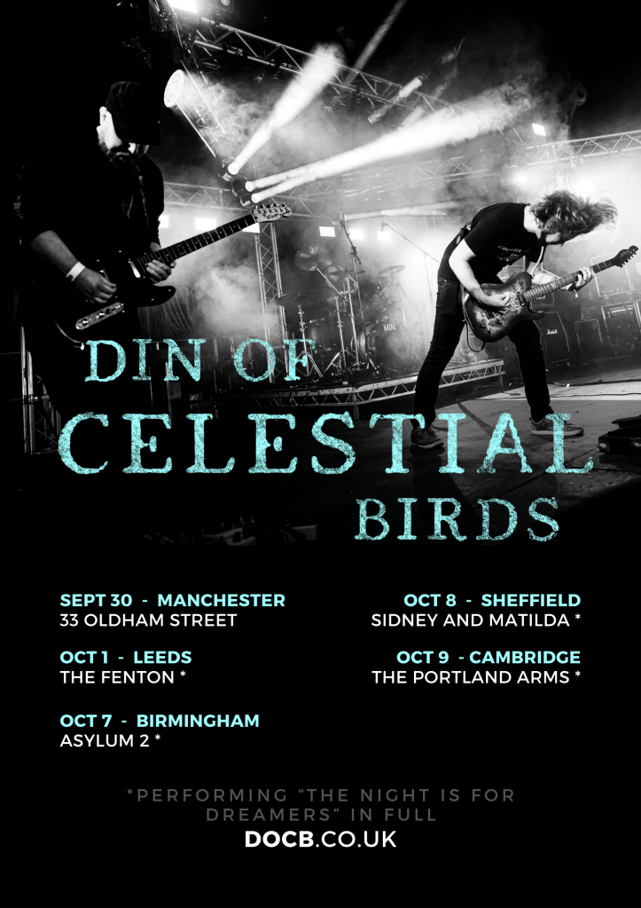 Epic, explosive and emotive Leeds, UK based post-rock quintet Din Of Celestial Birds announce a run of October UK tour dates. These shows will carry on the high momentum set by their momentous ArcTanGent Festival debut last month. The band will be performing their recently released debut album The Night Is For Dreamers in full on select dates.