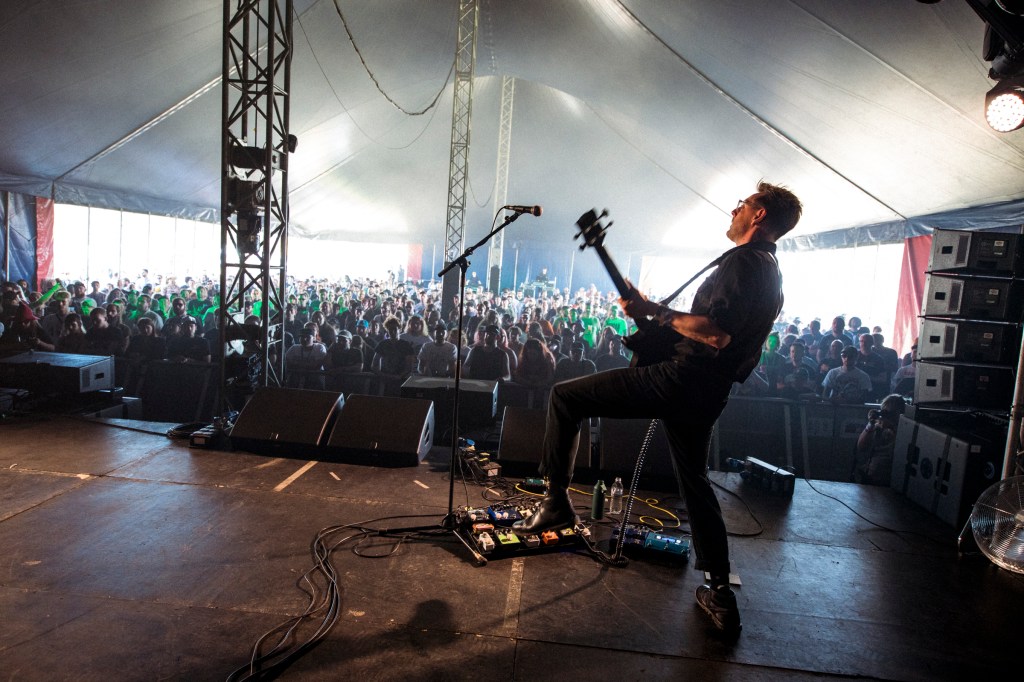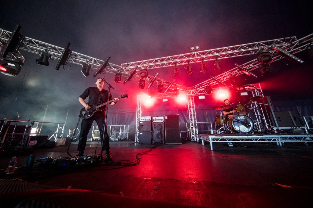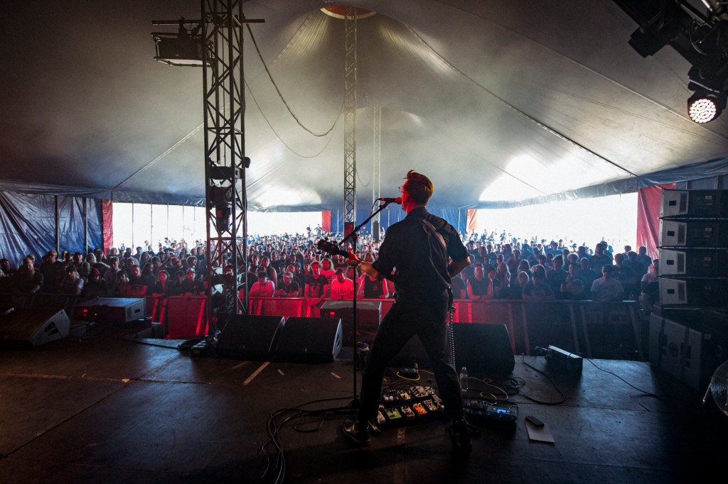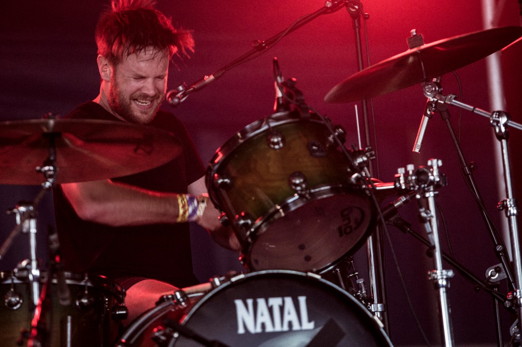 The Bixler tent is packed at 11:35am as the noisiest animals on the farm deliver their morning sermon – a lesson in fearsome sonic chaos, wild energy, fuzzed out bass, pummelling drums, and commanding bellows. Modern Technology are in their absolute element at ArcTanGent.