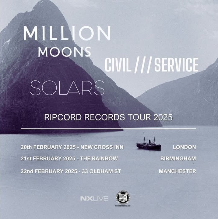 Instrumental post-rockers Civil Service and Solars will both team up with their Ripcord Records labelmates Million Moons for a short run of shows in February dubbed the “RipTour”.