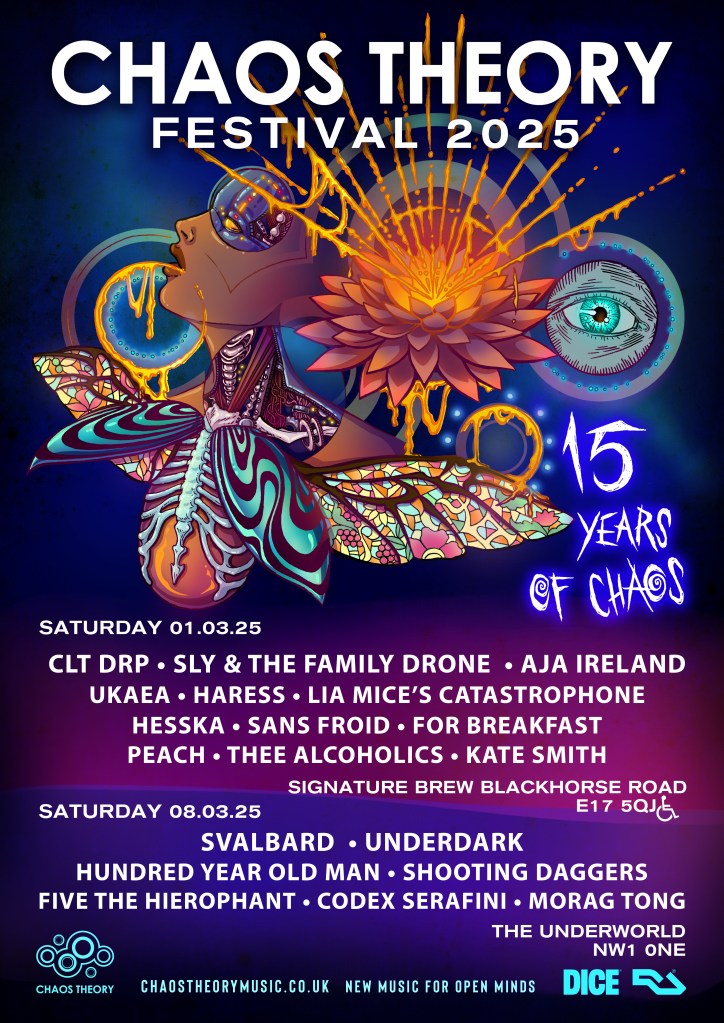 London’s favourite supporters of forward thinking underground music CHAOS THEORY celebrate 15 years of chaos with their most ambitious annual festival yet. Taking place across two consecutive Saturdays over two different venues, Chaos Theory Festival 2025 boasts an eclectic and exciting line-up showcasing many of the best and brightest names from across the UK.