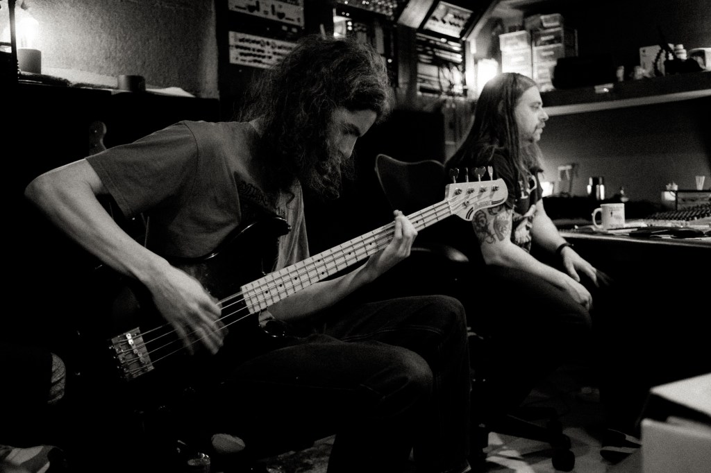 Self-described as “neo-crust sci-fi death sludge”, Trudger have always harnessed a progressive slant to their songs, boasting rhythms that won’t sit still, soaring across beastly syncopated drums. For Void Quest, the quartet still harness a progressive approach to their songwriting, building riffs upon riffs that often change and switch up without looking back. The quartet command a frantic existential urgency, introducing many unique riffs and ideas into every song. These are their most distilled and immediate compositions to date, packing in all the crunch with none of the flab, resulting in a lean 35 minute all killer, no filler album that easily invites repeat listens. Trudger settled right back into recording with producer and engineer Joe Clayton (Pijn, Floodlit Recordings) who helmed their previous album, now taking advantage of much improved facilities at Manchester’s fabled No Studio. A stones throw from Strangeways Prison, this intimate basement dwelling sonic altar has hosted the likes of Bossk, Mastiff, Still, Wallowing, Underdark, Tuskar, Mountain Caller, and many more revered heavy UK bands. In an unconventional approach for both the band and producer, drummer Chris Leak recorded his parts last, encouraging meticulous attention to the syncopation and interplay between the vocals and guitars.